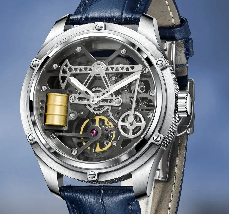 The Kinetic Derrick Men’s Automatic Watch is a masterful fusion of engineering and artistry — designed for men who appreciate the beauty of motion and mechanical precision. Inspired by the elegance of industrial craftsmanship, this timepiece features a real moving oil pump mechanism built into its dial, symbolizing constant energy and drive.